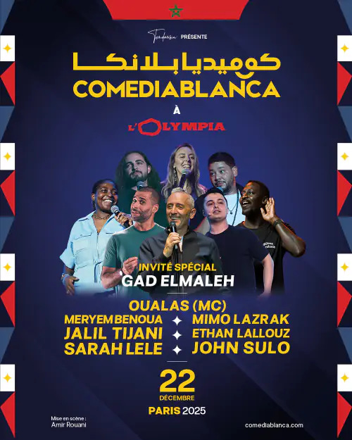 Après avoir conquis le cœur de plus de 11 000 spectateurs au Maroc, Comediablanca pose ses valises à Paris et inaugure sa tournée internationale sur la scène mythique de l’Olympia.